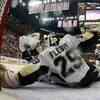 Goaltender Marc-Andre Fleury #29 of the Pittsburgh Penguins makes a glove save on a shot from the Detroit Red Wings during game five of the 2008 NHL Stanley Cup Finals at Joe Louis Arena on Monday, June 2, 2008 in Detroit, Michigan. (Photo/Dave Sandford) ()See more of :