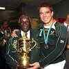 South Africa's Bryan Habana (C) and Percy Montgomery celebrate after their Rugby World Cup win against England in the final at the Stade de France Stadium in Saint-Denis, near Paris on Saturday, October 20, 2007 - Photogallery