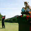 Jim Furyk drives on the eighth hole as playing partner Tiger Woods in the final round of the Target World Challenge golf tournament at Sherwood Country Club in Thousand Oaks, California on Sunday, December 16, 2007. (AP Photo/Reed Saxon)