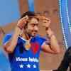 First runner up Yatharth Ratnam Rastogi with Salman Khan on the sets of 'Sa Re Ga Ma Pa Little Champs' grand finale.