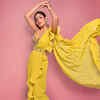 Surbhi Chandna is back at her fashion game, often etching a unique look to remember in our fashion rule books. The TV beauty decked up as the perfect diva and we couldn't stop marvelling at her. The 'Ishqbaaz' actress is making heads turn her way in a stunning yellow saree. Needless to say, Surbhi aced the mellow look in a yellow ruffled saree with a printed blouse. It's a simple traditional attire, nothing too blingy and she pulled off the look easily. The spaghetti-strap blouse was paired with the saree and an embellished waist belt. To complete her look, Surbhi opted for a pair of statement earrings and dazzled in highlighted cheeks, kohled eyes, nude lips and of course, well-defined brows. Her latest photoshoot made fans gaga over her flawless look. We must say that the colour has accurately set the tone for a brighter winter. Earlier, the TV actress nailed the boss lady look in a lavender pantsuit. Surbhi also made headlines while vacationing in the Maldives. She redefined beachwear fashion at the picturesque destination. (All photos: Surbhi Chandna/ Instagram)